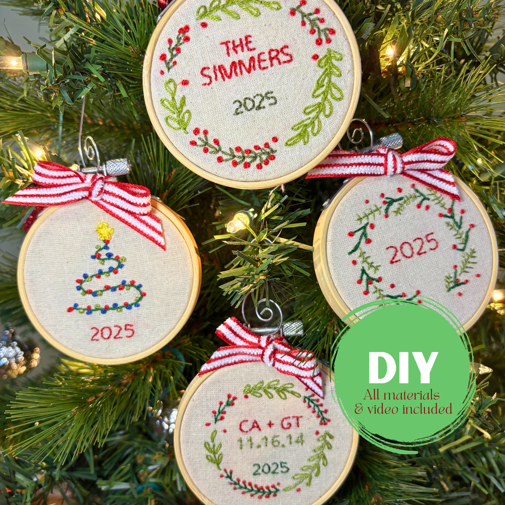 For personalization - please use my Etsy shop @ginathebotina. Add a touch of handmade charm to your holiday décor with these hand embroidered ornaments. Each piece is carefully stitched by hand, making every ornament one of a kind. Each ornament is 3x3".